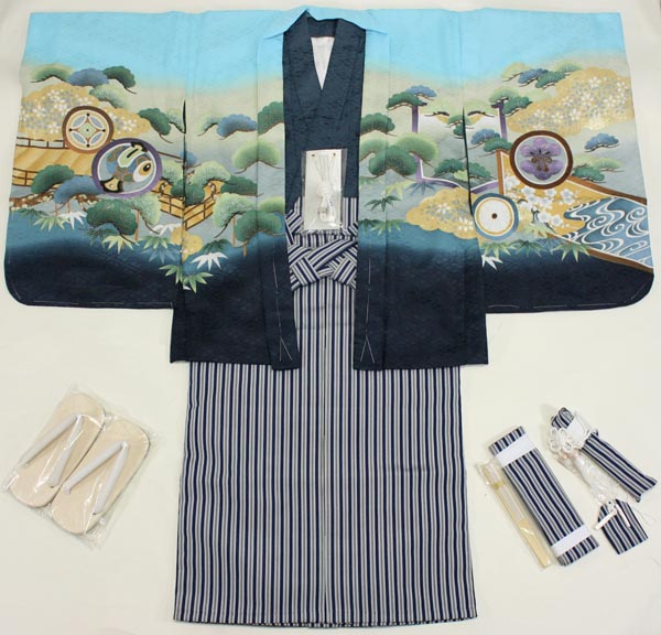 ホーム | 七五三(男の子5歳用) > 七五三男の子5歳着物袴セット 合繊七五三5歳着物袴15点セット 水色