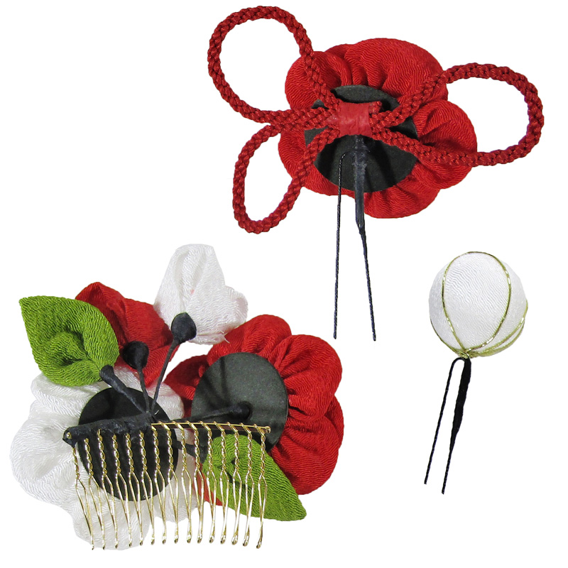 ホーム七五三髪飾り髪飾り 椿コーム3点セット